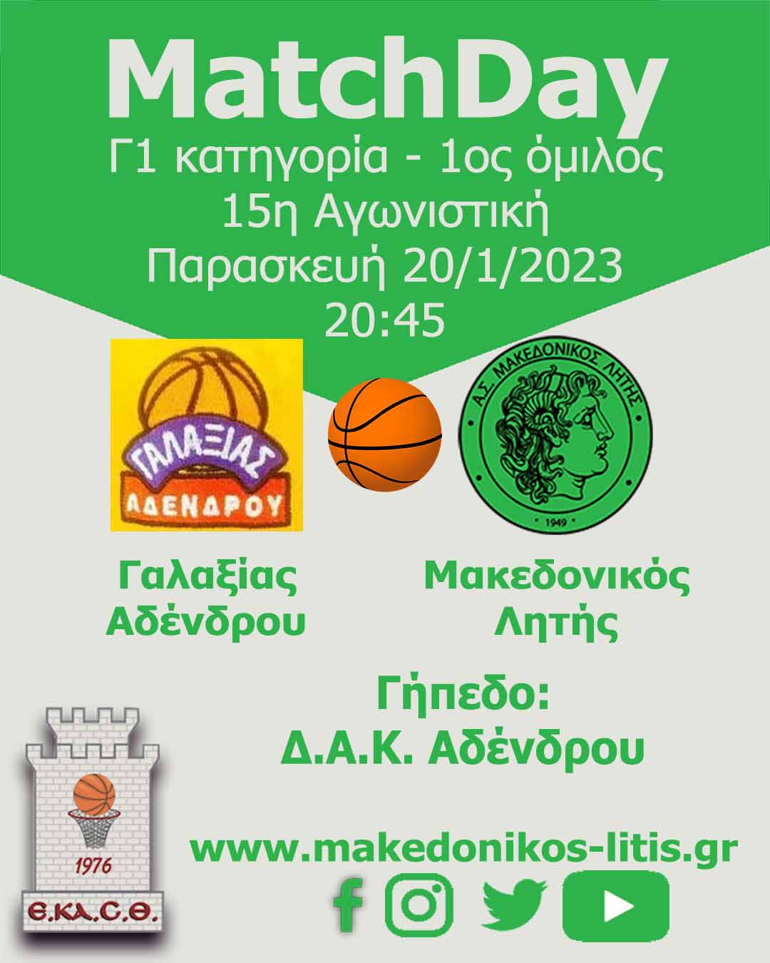 Φινάλε του πρώτου γύρου του πρωταθλήματος με ντέρμπι, καθώς ο Μακεδονικός Λητής φιλοξενείται από τον Γαλαξία Αδένδρου, αύριο Παρασκευή 20/1 και ώρα 20:45
