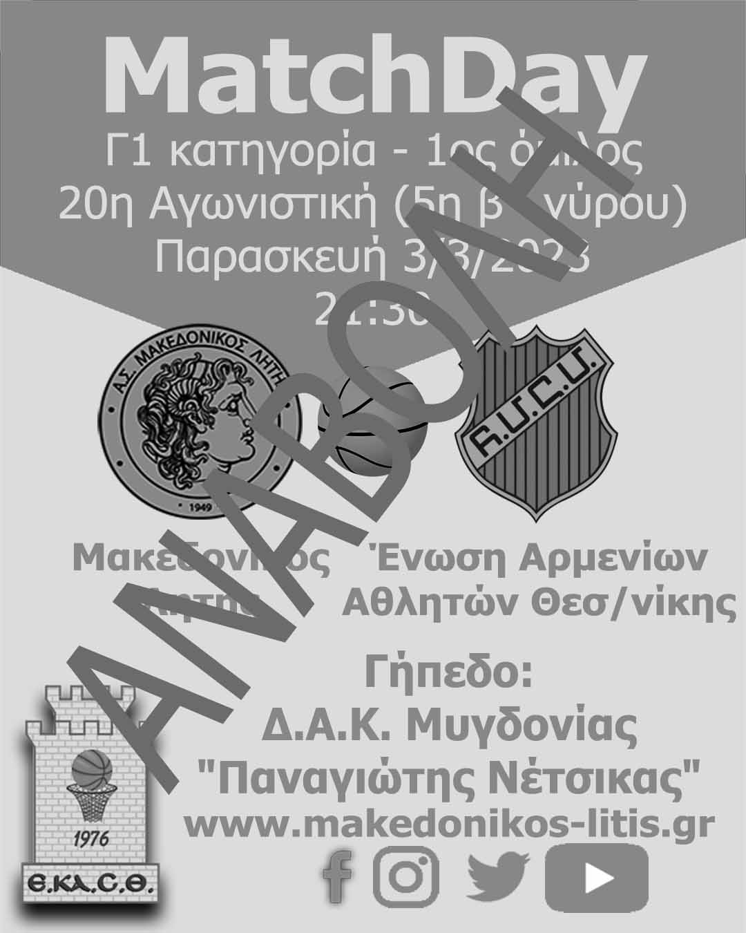 Ως εκ τούτου, ο προγραμματισμένος εντός έδρας αγώνας με αντίπαλο την Αρμενική, αναβάλλεται.