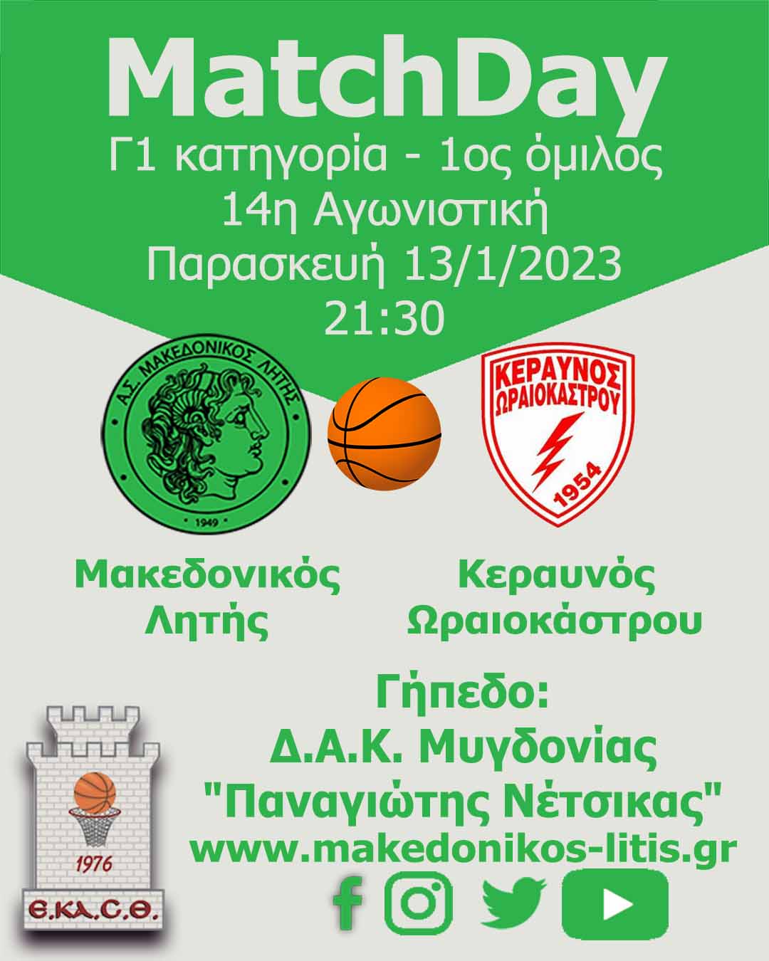 Μακεδονικός Λητής – Κεραυνός Ωραιοκάστρου στο ντέρμπι της αγωνιστικής σήμερα 13/1 και ώρα 21:30.