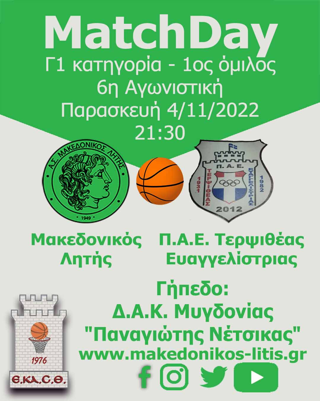 Με στόχο την δεύτερη νίκη στο πρωτάθλημα, ο Μακεδονικός Λητής υποδέχεται την ομάδα της Τερψιθέας – Ευαγγελίστριας αύριο Παρασκευή 4/11 και ώρα 21:30.