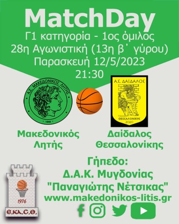 Εντός έδρας αναμέτρηση σήμερα Παρασκευή 12/5 και ώρα 21:30 για τον Μακεδονικό Λητής, καθώς υποδέχεται τον Δαίδαλο Θεσσαλονίκης για την 28η αγωνιστική του πρωταθλήματος.