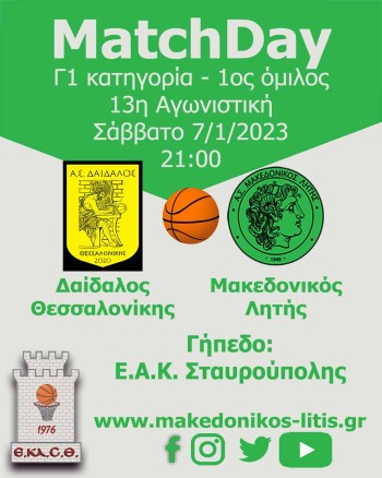 Με το δεξί μπήκε το 2023 για τον Μακεδονικό Λητής, καθώς η ομάδα μας πέτυχε την έκτη κατά σειρά νίκη. Το Σάββατο 7/1/2023 στο πλαίσιο της 13ης αγωνιστικής του πρωταθλήματος, επικράτησε εκτός έδρας του Δαίδαλου Θεσσαλονίκης με σκορ 48-70.