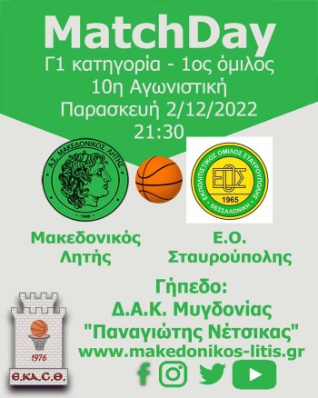 Μεγάλη νίκη του Μακεδονικού Λητής επί του Ε.Ο. Σταυρούπολης με σκορ 81-44, την Παρασκευή 2/12 για την 10η αγωνιστική του πρωταθλήματος.