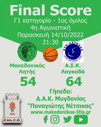 Δεν κατάφερε να πάρει τη νίκη ο Μακεδονικός Λητής απέναντι στον Α.Σ.Κ. Λαγκαδά, καθώς ηττήθηκε με σκορ 54-64 για την τέταρτη αγωνιστική του πρωταθλήματος.