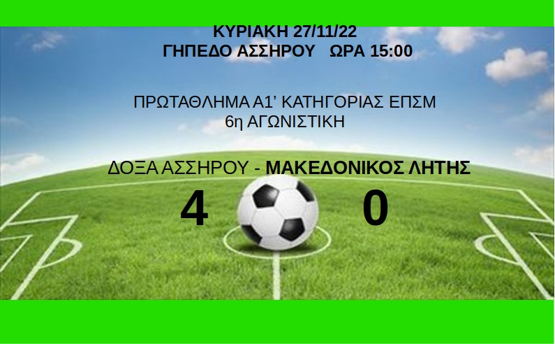 Ήττα με σκορ 4-0 για την ομάδα μας στον εκτός έδρας αγώνα με την Δόξα Ασσήρου.