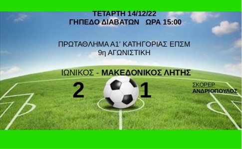 Παρά την καλή εμφάνιση, η ομάδα μας δεν κατάφερε να κερδίσει κάποιο βαθμό απέναντι στον Ιωνικό, καθώς δέχτηκε γκολ στις καθυστερήσεις του αγώνα και ηττήθηκε με σκορ 2-1.