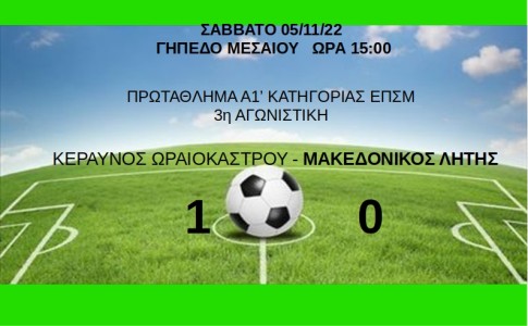 Δεν τα κατάφερε η ομάδα μας καθώς ηττήθηκε εκτός έδρας με σκορ 1-0 από τον Κεραυνό Ωραιοκάστρου.