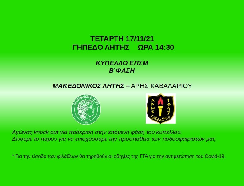 Αγώνας knock out για την πρόκριση στην γ΄ φάση του κυπέλλου ΕΠΣΜ.