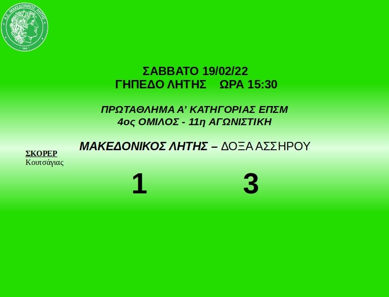Δεν τα κατάφερε η ομάδα μας στο ντερμπι της 11ης αγωνιστικής του πρωταθλήματος, καθώς ηττήθηκε από την Δόξα Ασσήρου.
