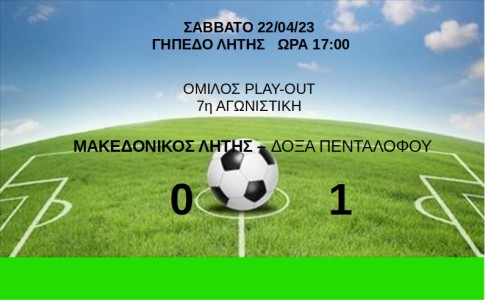 Επόμενος αγώνας την Κυριακή 30/04 στο πλαστικό της Τριανδρίας με αντίπαλο τον τοπικό Αχιλλέα.