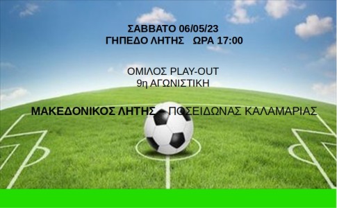 Ας βρεθούμε στο γήπεδο να χειροκροτήσουμε τους νεαρούς ποδοσφαιριστές μας..