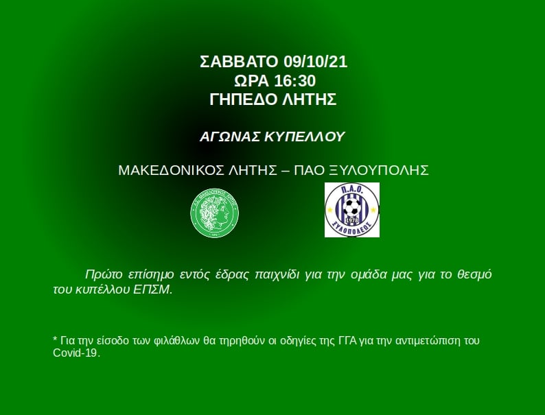 makedonikos litis xilopoli pregame kipello 2021 2022Πρώτος επίσημος εντός έδρας αγώνας για το κύπελλο ΕΠΣΜ. Σήμερα Σάββατο και ώρα 16:30 η ομάδα μας θα αντιμετωπίσει τον ΠΑΟ Ξυλόπολης.