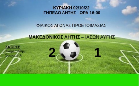 Νέα φιλική νίκη για την ομάδα μας, με σκορ 2-1 απέναντι στη δυνατή ομάδα του Ιάσων Αυγής.
